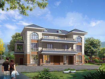 农村三层兄弟双拼欧式风格别墅设计图及效果图纸