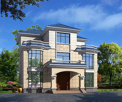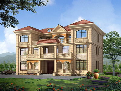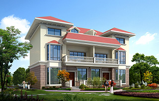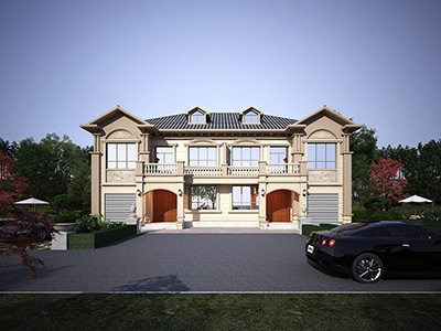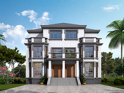 农村三层兄弟双拼欧式风格别墅设计图及效果图纸